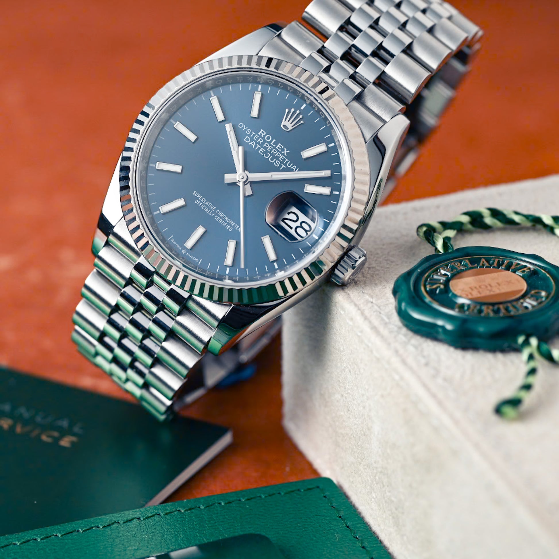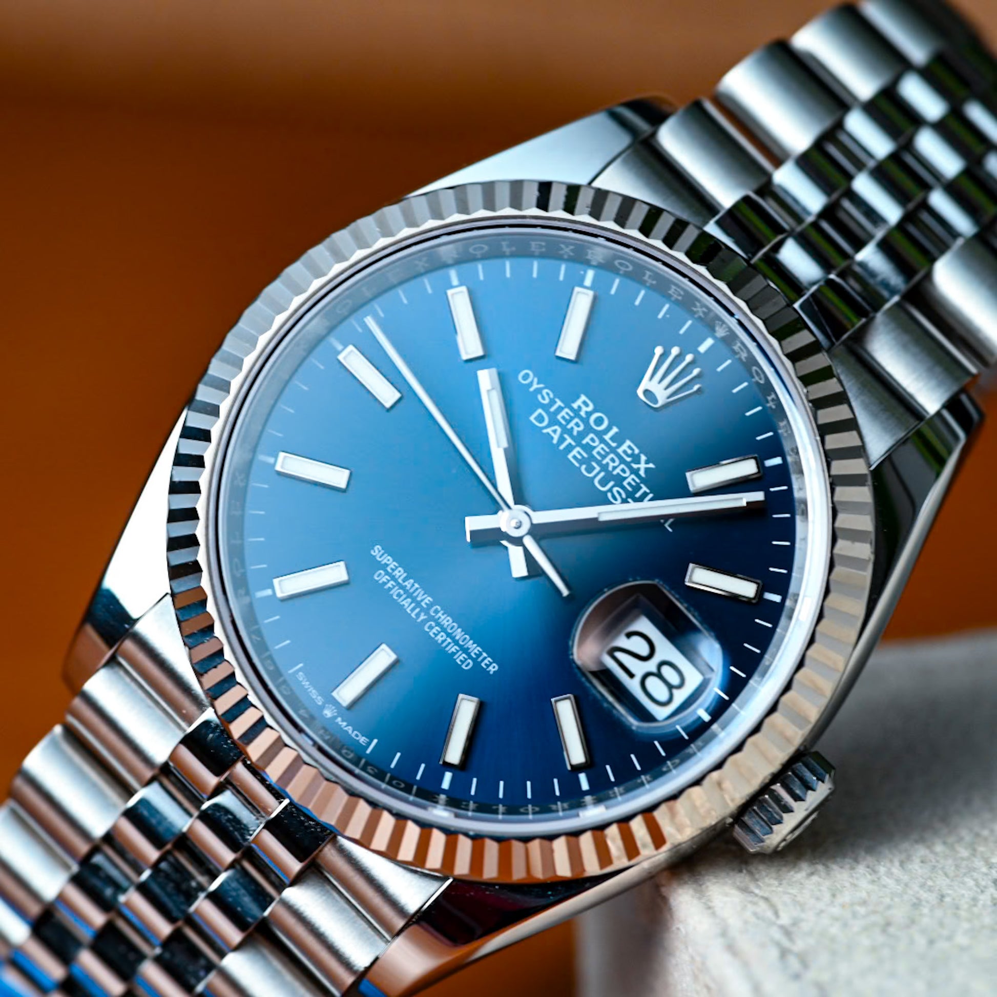This version of the Datejust 36 is equipped with calibre 3235, a new-generation movement entirely developed and manufactured by Rolex. Calibre 3235 is equipped with a self-winding module via a Perpetual rotor. Thanks to its barrel architecture and the escapement’s superior efficiency, the power reserve of calibre 3235 extends to approximately 70 hours.