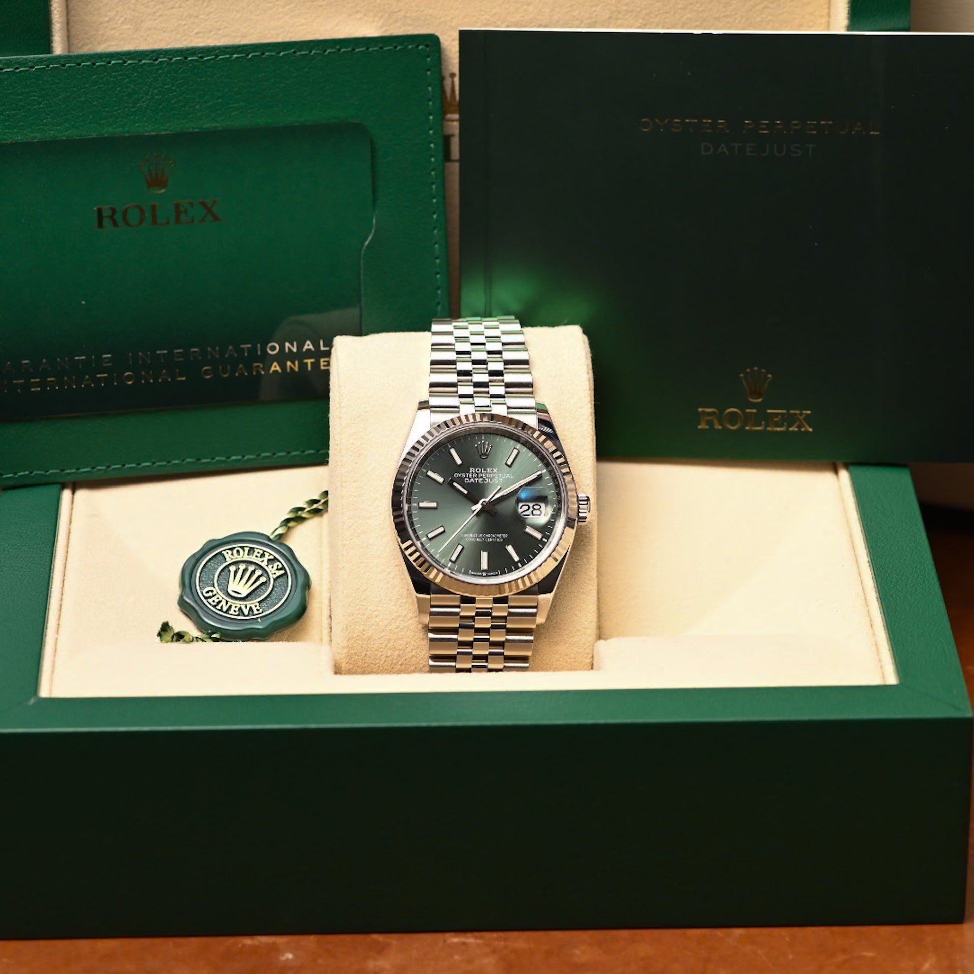 This version of the Datejust 36 is equipped with calibre 3235, a new-generation movement entirely developed and manufactured by Rolex. Calibre 3235 is equipped with a self-winding module via a Perpetual rotor. Thanks to its barrel architecture and the escapement’s superior efficiency, the power reserve of calibre 3235 extends to approximately 70 hours.