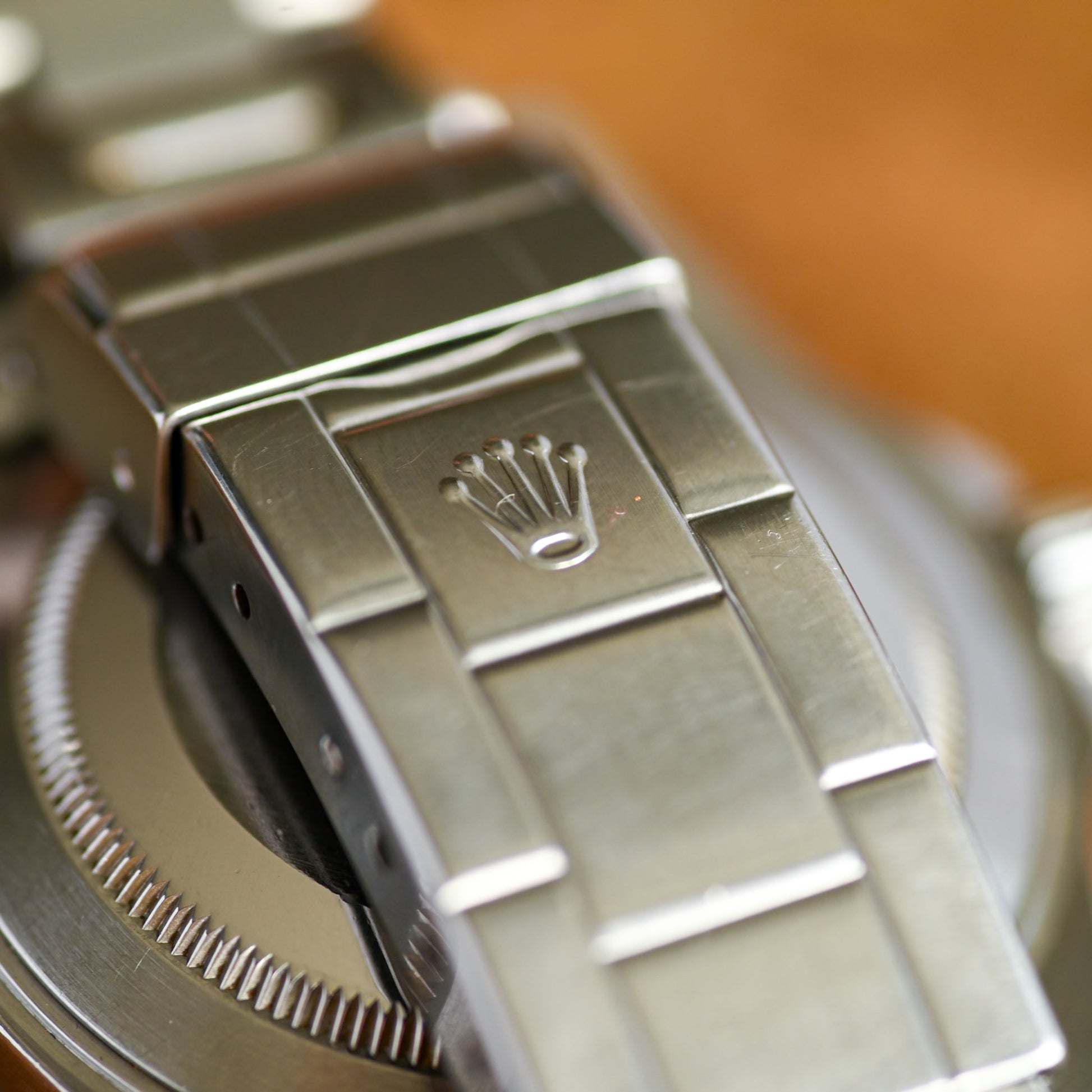 The watch has a glossy dial, that is marked ‘Swiss-T<25’ at the bottom, signifying the use of tritium in the hour markers and hands. The case remains in very strong condition with thick and even lugs and crown guards. The bracelet is a reference 93150 in excellent condition with a clasp stamped ‘V 11’ and 501b endlinks. The watch has been fully checked and regulated by our watchmaker.